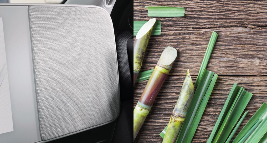 | Các vật liệu từ lớp lót và vải thảm được tạo nên từ các thành phần sinh học chiết xuất từ mía và ngô. Ghế ngồi và tay vịn cửa cũng sử dụng vải làm từ chai PET tái chế. | Các thành phần da ghế được nhuộm bằng dầu hạt lanh, được xử lý hoàn toàn thân thiện với môi trường. |