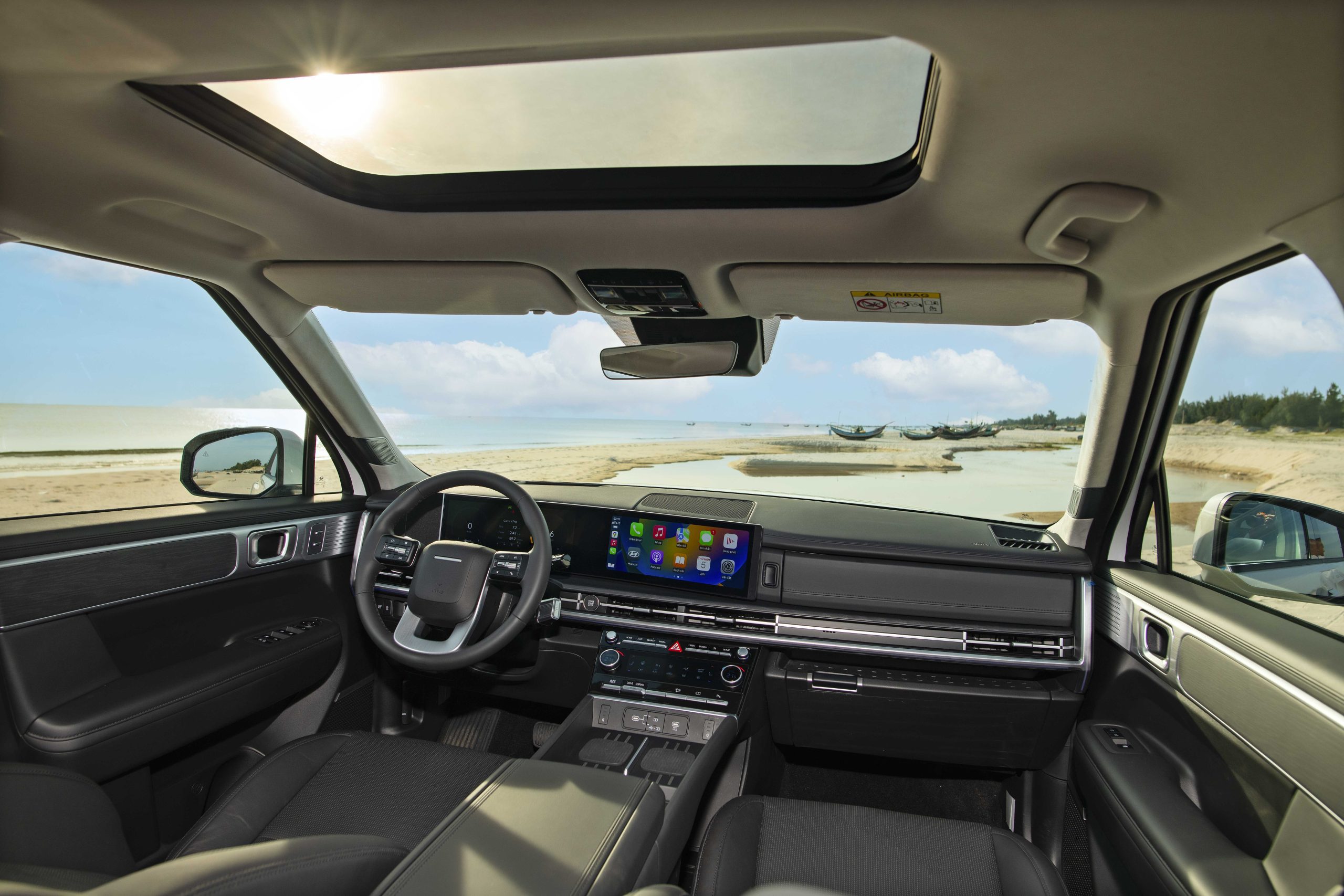 | Thiết kế & ngoại hình | Kích thước tổng thể: dài x rộng x cao khoảng 4.830 x 1.900 x 1.780 mm, chiều dài cơ sở 2.815 mm — giúp xe trông bề thế, tạo dáng sang trọng. Khoảng sáng gầm 177 mm, giúp xe linh hoạt khi đường ngập hoặc dốc nhẹ. Sở hữu kích thước mâm lớn 21 inch, các chi tiết nhận diện như logo, ốp bánh cao cấp, đèn pha LED định vị ban ngày tạo hình “chữ H” mang cảm giác hiện đại, khác biệt. |